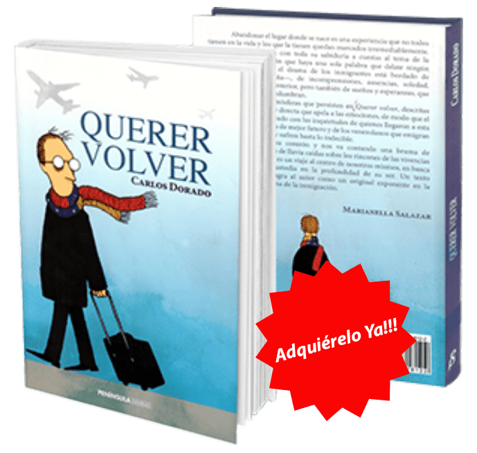 “Querer Volver”, un libro que combina el drama de la nostalgia –morriña-, la ausencia e incertidumbre interna del emigrante, con los sueños y esperanzas que lo vislumbran ante ese futuro mejor que busca en tierras ajenas. Hay decisiones que cambian la vida de una persona. Dejar el país de origen para comenzar de nuevo en otra tierra que le es ajena, en búsqueda de una mejor calidad de vida personal, profesional y familiar; esto conlleva una serie de toma de decisiones peregrinas, de sentimientos difíciles de compaginar, sacrificios, además de experiencias no siempre deseables, las cuales se expresan con un lenguaje sencillo en “Querer Volver”. Carlos Dorado comparte con los lectores el sentido de la incertidumbre, la difícil toma de decisiones, los miedos, desaciertos, las anécdotas y los triunfos que vivió como persona al emigrar de niño junto a sus padres.